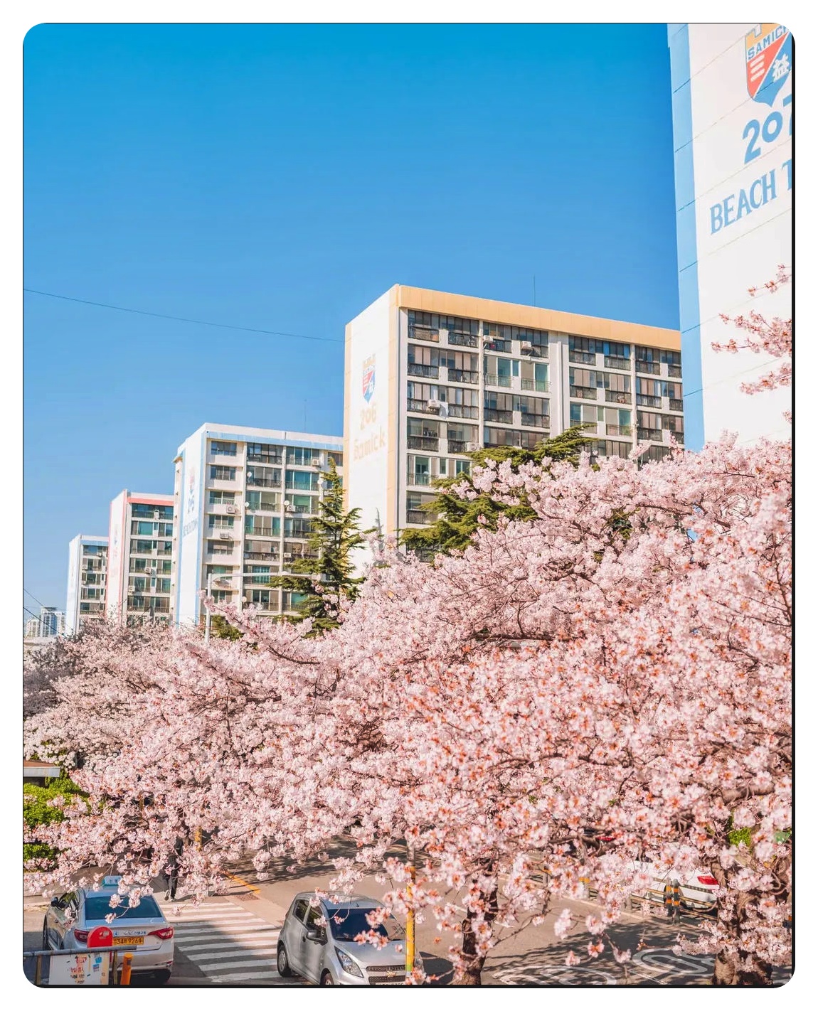 "드디어 부산의 심장이 핑크빛으로 물들었습니다. 2026년 봄, 부산 벚꽃의 상징 남천동 삼익비치가 드디어 터졌습니다."