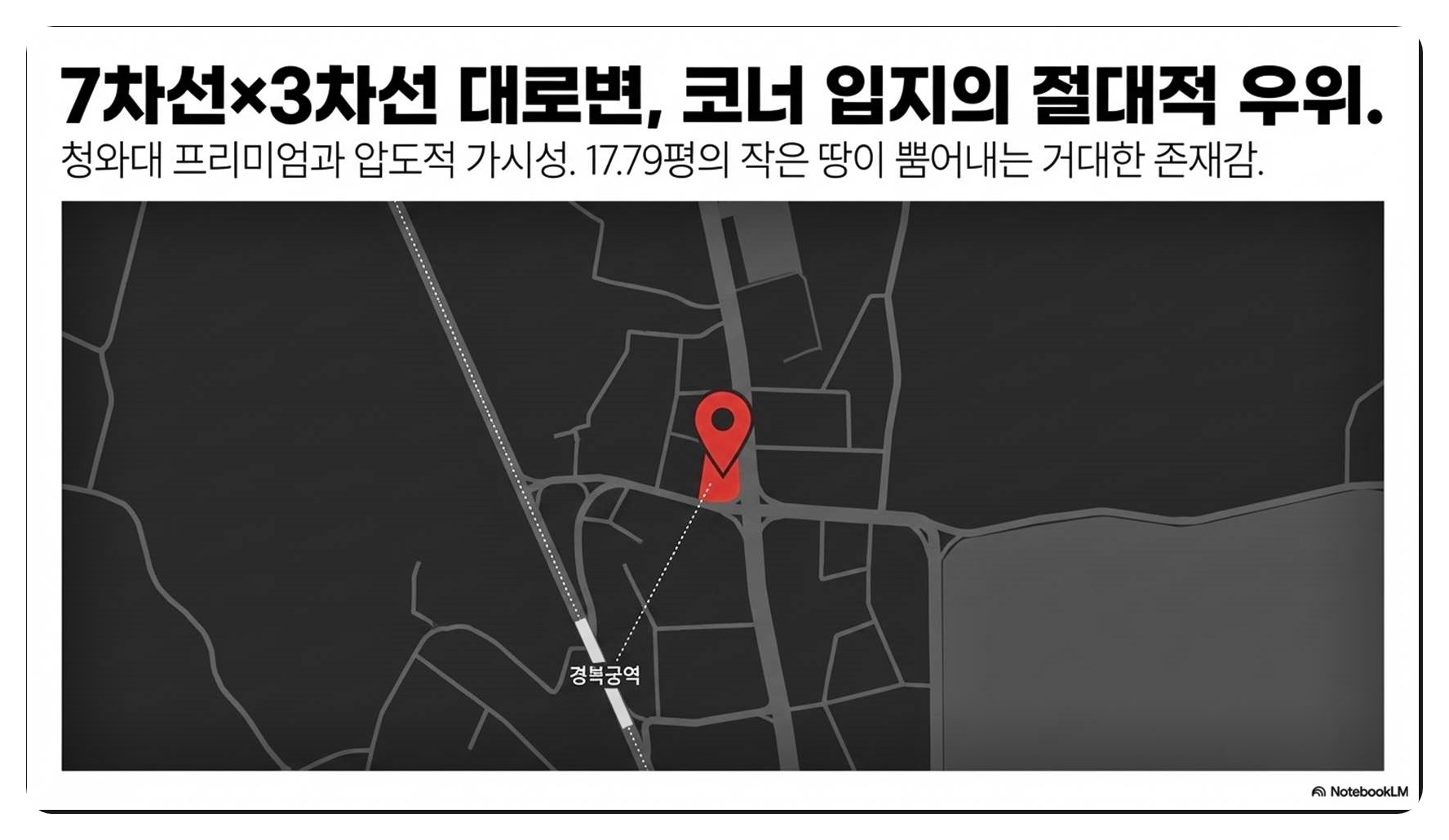 - - 입지/매가: 청와대 앞 궁정동 대로변 코너 / 매매가 16억 원