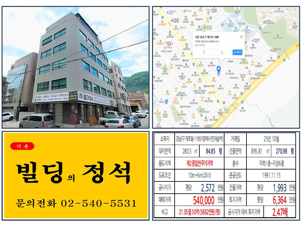 🏢 "50억에 사서 54억에 매도..." 강남 건물주가 '본전 치기'하고 나간 이유 (개포동 1189 매각 분석)