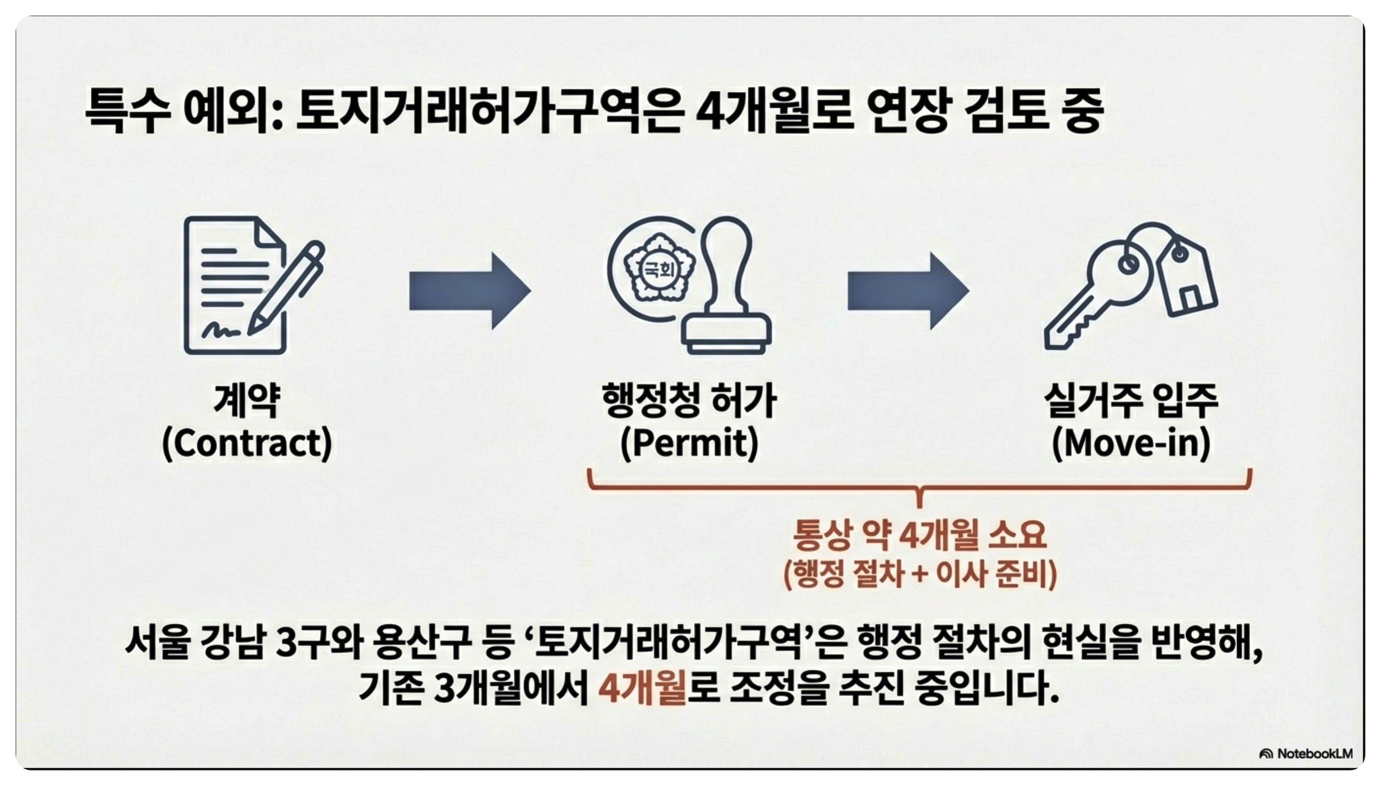 | 4개월 | 토지거래허가구역 - 강남 3구, 용산구 일부 등 |