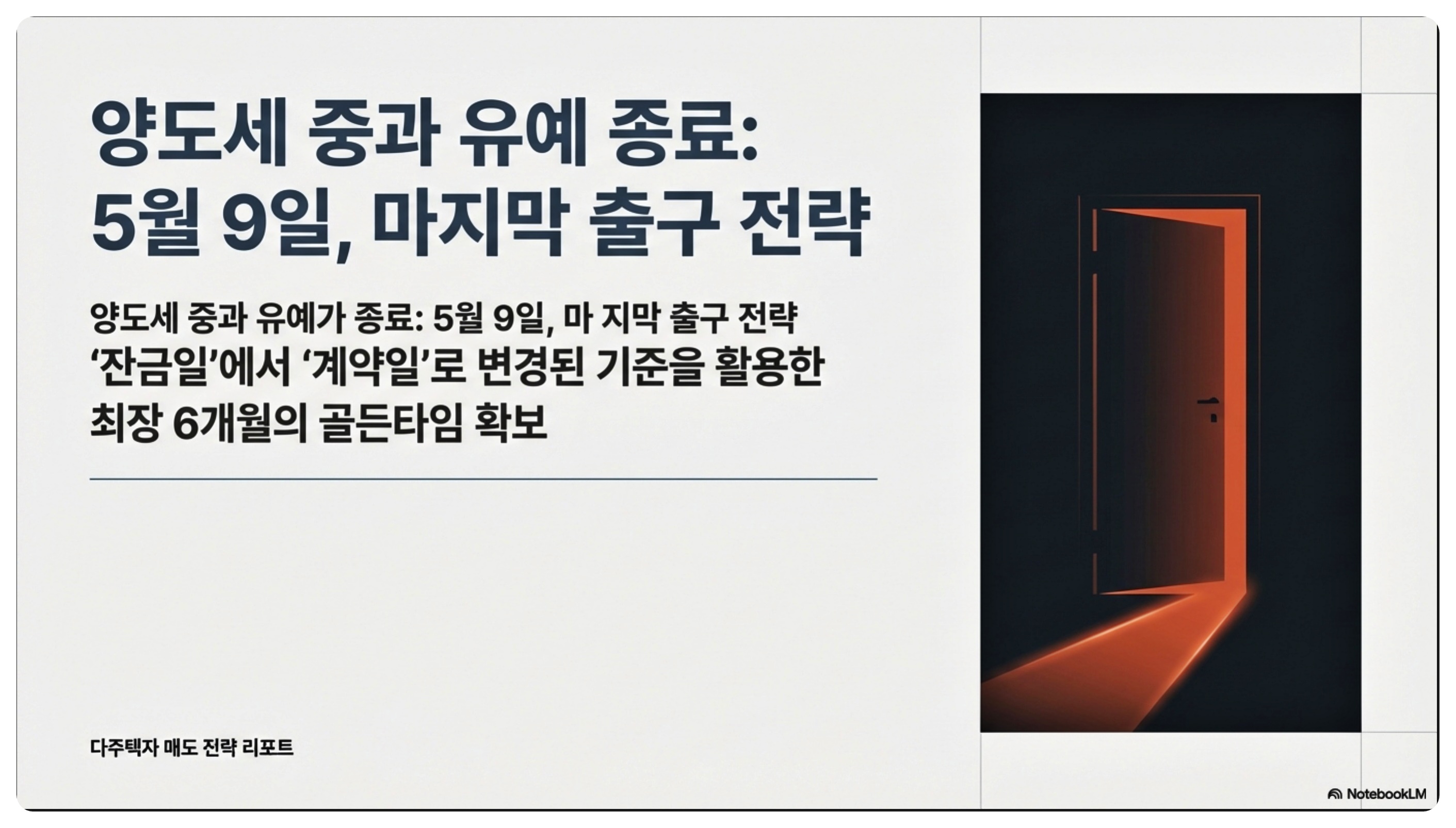 | 기준 변경 | 양도세 중과 유예 기준이 '잔금 청산일'에서 '매매 계약 체결일'로 변경 |