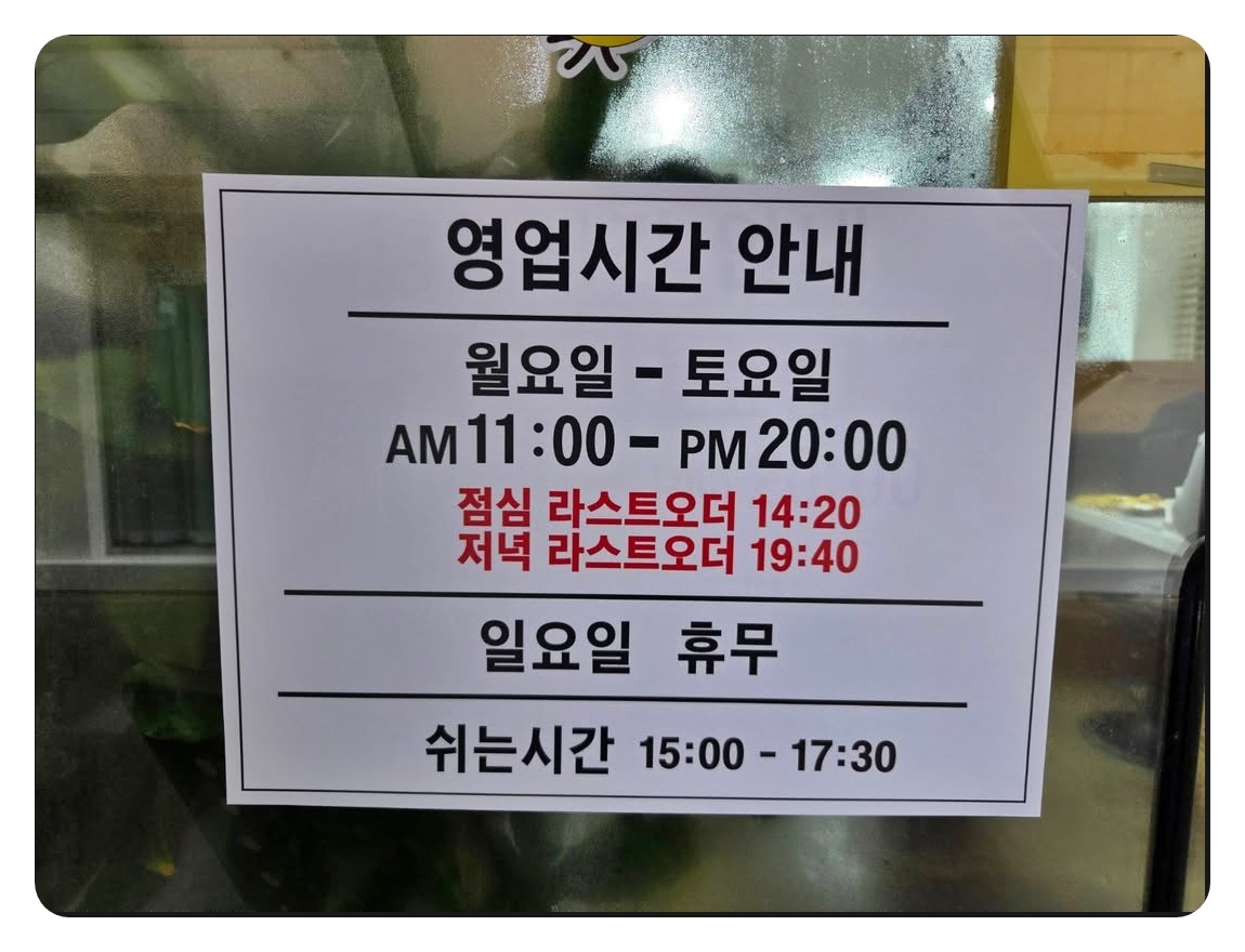 - (🚨 브레이크 타임!) ➡️ **15:00 ~ 17:30**까지 브레이크 타임이니, 이 시간을 피해서 방문하세요!