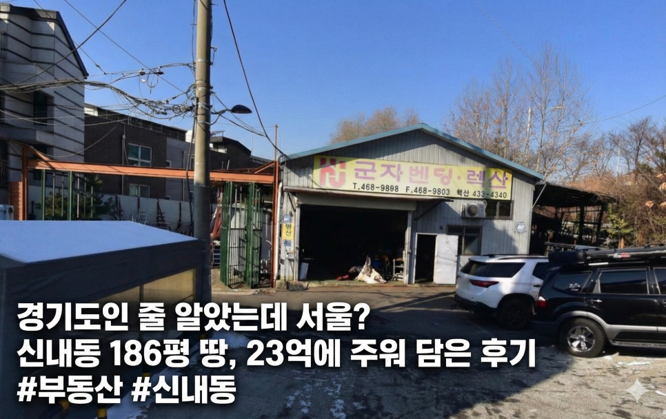 오늘은 그 부자 형님이 알려준, 서울 중랑구 신내동의 23억짜리 공업사 건물 거래(25년 12월) 이야기를 풀어보려 합니다. 남들은 낡았다고 지나칠 때, 왜 고수들은 이 건물을 '보물단지'라 불렀는지 지금부터 공개합니다! 🔍