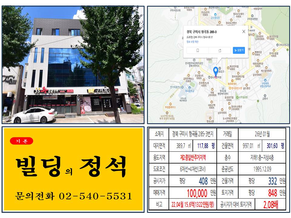 - ✅ 거래 현황: 2026년 1월, 구미 형곡동 대로변 코너 건물 10억 원 매매