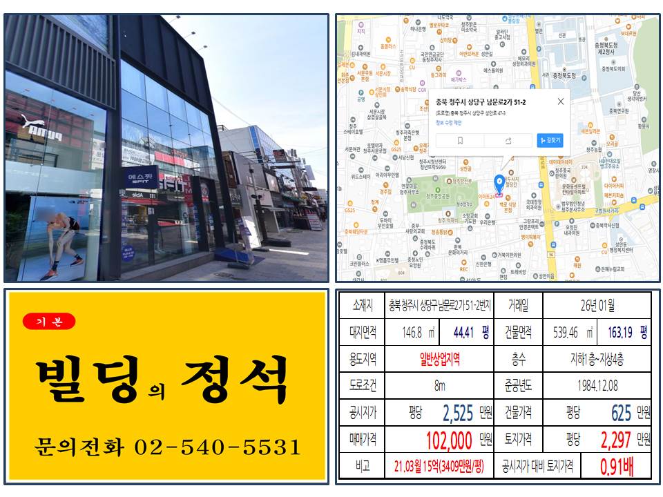 - ✅ 거래 현황: 2026년 1월, 청주 성안길 메인 상권 5층 건물 10.2억 원 매매